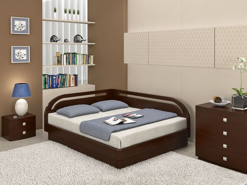 Лучший способ поставить угловую кровать размера «queen-size» и при этом получить доступ к обеим сторонам — наклонить изголовье по диагонали с двух сторон угла, а затем расположить кровать так, чтобы она занимала всю комнату в центре. Поскольку длина кровати выступает вглубь комнаты, пользователь может получить достаточный доступ с обеих сторон кровати. Это рискованный дизайн, и его следует пробовать только в спальне, где достаточно места для кровати, которую можно поставить в центре.