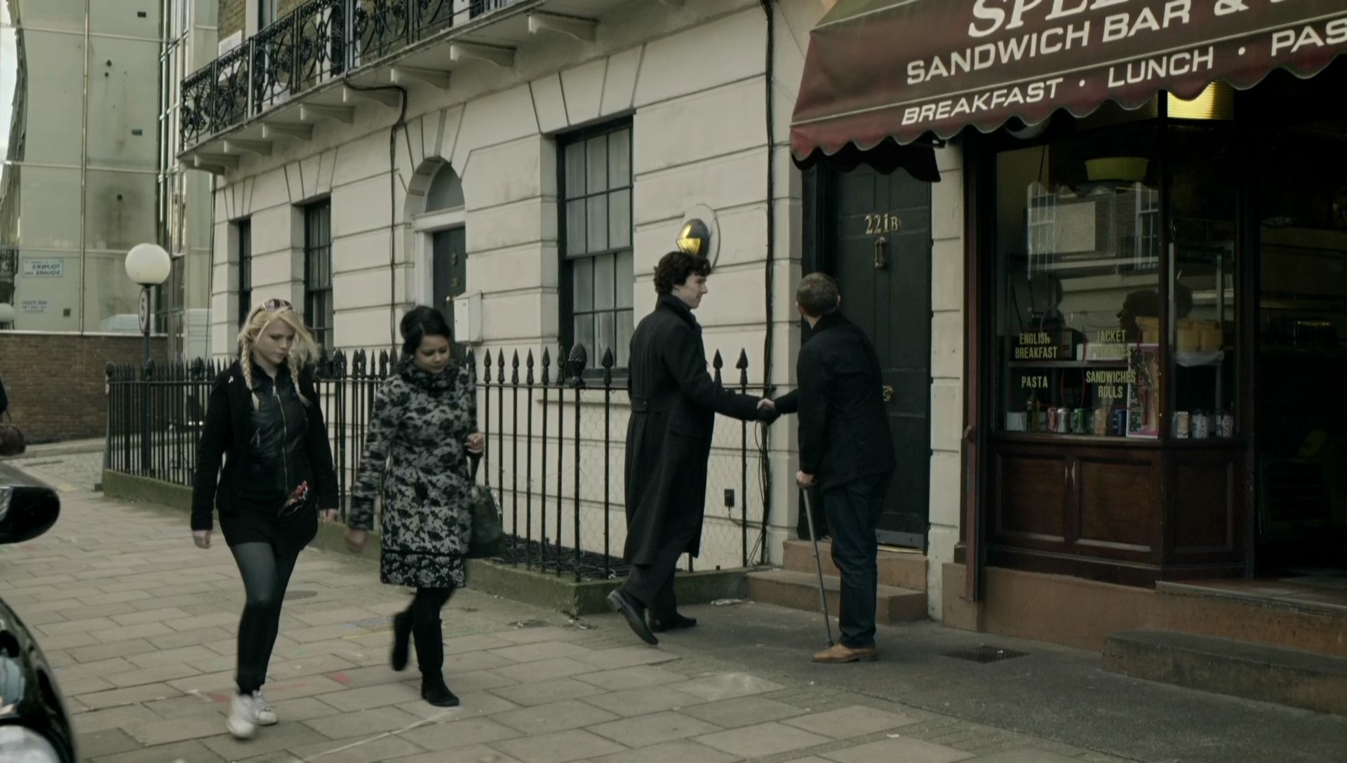 Согласно произведениям Артура Конан-Дойля, Шерлок Холмс и его друг доктор Ватсон жили в квартире по адресу Бейкер-стрит, 221b (221b, Baker street) в период с 1881 по 1904 год. Во время написания этих произведений такого адреса в Лондоне не существовало.