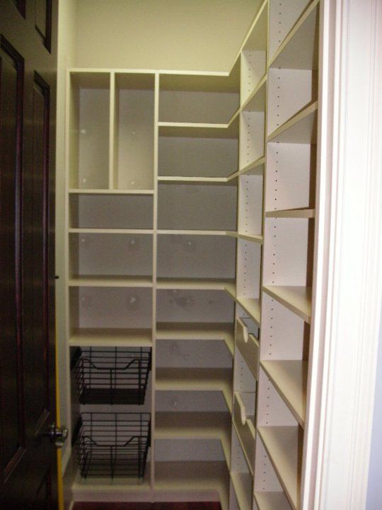 Угловые полки позволяют максимально использовать пространство в маленькой кладовке.