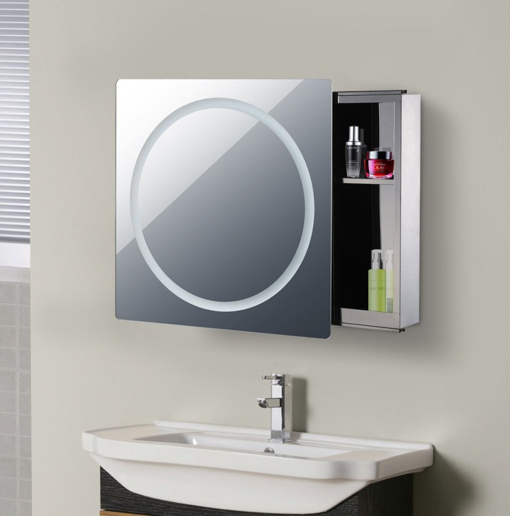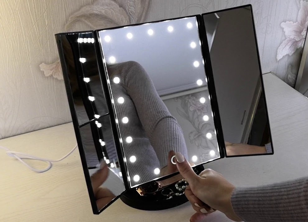 Оптимальным вариантом является расположение ниже середины ближе к правому или левому краю отражающего полотна. При этом лицо дополнительно будет освещаться основной подсветкой зеркала.