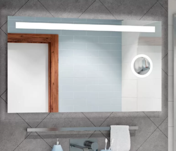 - Выделяются пять типов дополнений для зеркал: нагреватель, увеличительная вставка, электронные или сенсорные часы, аудиосистема, подсветка RGB;