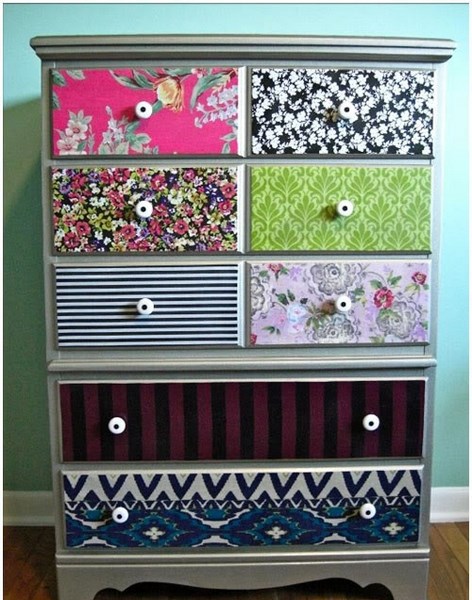 Давайте посмотрим, какие есть варианты декора мебели с помощью остатков обоев.