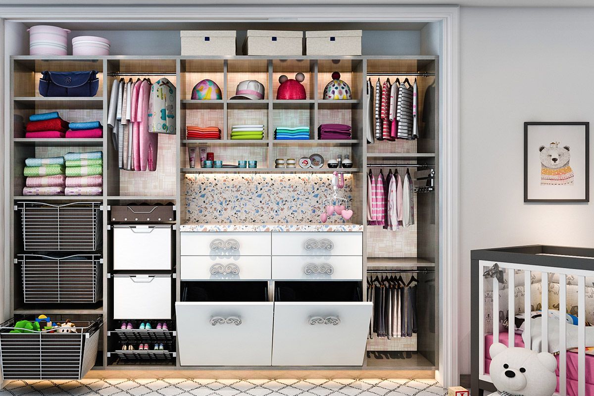 Если в вашей семье есть художник: в шкафу необходимы большие и плоские ящики, а также невысокие, но широкие полки — чтобы было удобно складывать рисунки. Рассмотрите также вариант вертикального хранения: узкие (20-30 см), но глубокие отсеки размером как минимум 80 сантиметров в глубину и 100 см в высоту