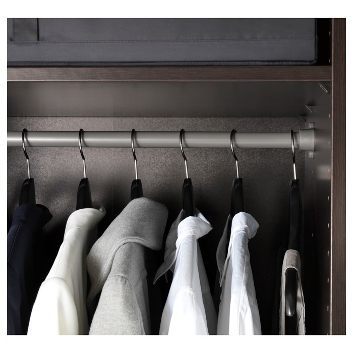 Чтобы в шкафу постоянно был порядок, а поиск необходимой одежды не был долгим, используется штанга. Она закрепляется вдоль или поперек платяного изделия, в зависимости от ее типа. Кроме того, применение сразу двух или трех приспособлений позволяет размещать гардеробные элементы на нескольких уровнях.
