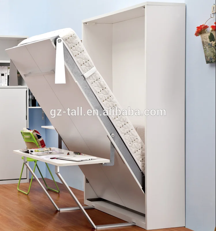 тарелки. Мебель этой коллекции проектируется индивидуально из модулей — вы можете выбрать цвета панелей, ручек и аксессуаров из предоставленной цветовой палитры. Механизм в шкафу-кровати гидравлический, рассчитан на 30000 циклов подъема-опускания. Кровать с изогнутыми фанерными ламелями, которые встроены в прочный металлический сварной каркас. Каркас окрашен белой порошковой краской. Это экономичный вариант раскладушек – ножки складываются и фиксируются по одной. Кровать оснащена защитой от самозакрывания во время сна. Эта раскладушка – идеальное решение для студии или тесной квартиры. Трансформируемая мебель экономит место в комнате и деньги. Эта мебельная композиция прекрасно подойдет для комнаты молодого человека, комнаты пожилого человека или студии.