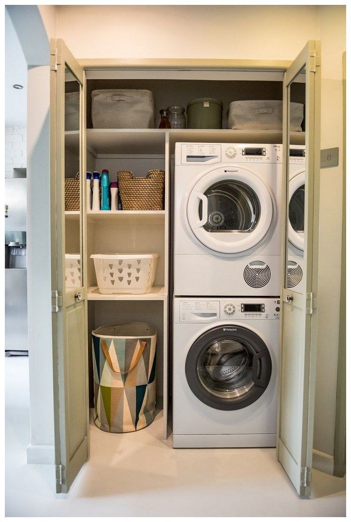comЭтот изящный трюк просто идеален для тех, кто жаждет функциональной, хорошо организованной прачечной. Перенесите свои основные приборы для стирки в гардеробную, чтобы легко переключаться между работой по дому и одеванием. Просто не забудьте аккуратно рассортировать рубашки, обувь, сумки и все свои коллекции на разных полках.