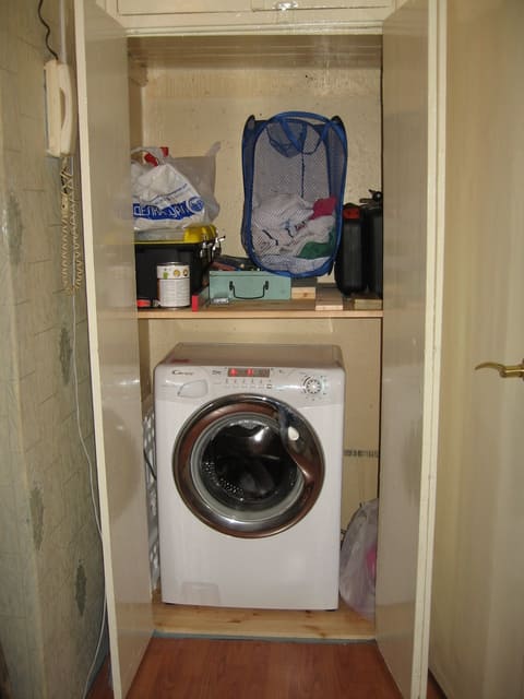 - Если не хотите, чтобы гости попадали в «прачечную», заходя в квартиру, уберите машинку от посторонних взглядов.
