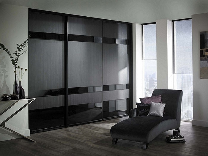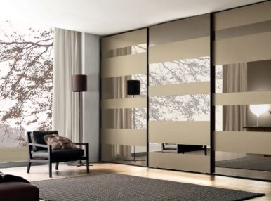 Прекрасным украшением шкафа-купе может стать стеклянный или зеркальный фасад. Цветное стекло или зеркало, украшенное рисунком, могут стать настоящей изюминкой гостиной комнаты. Кроме того, такие двери выполняют из специальных видов стекла, и они полностью отвечают всем эксплуатационным требованиям.