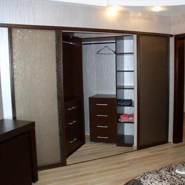 Это визуально раздвинет стены. Размещение может быть треугольным или радиусным. Угловой шкаф-купе «украдет» место одного из углов, зато гармонично впишется в интерьер.