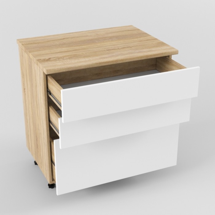 верхняя часть тумбы должна быть на высоте 870 мм от пола плюс 40 мм рабочей поверхности, что обычно дает окончательную высоту 910 мм
