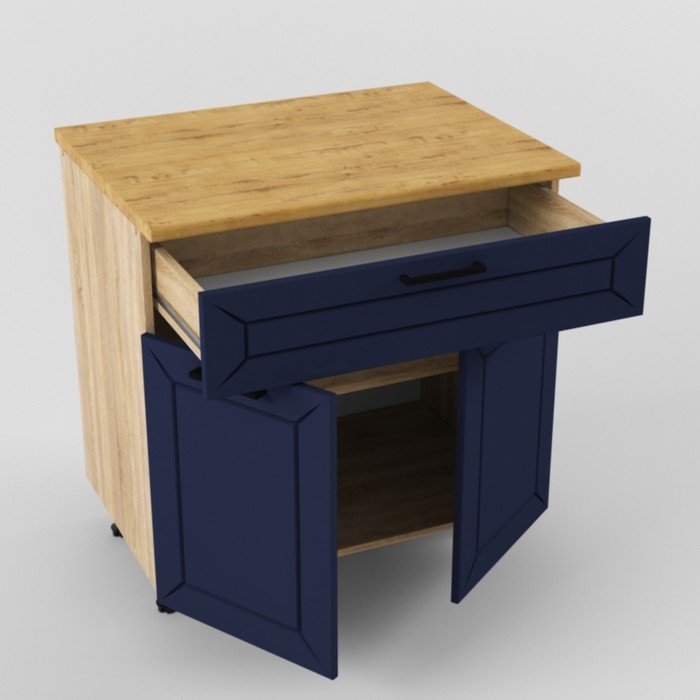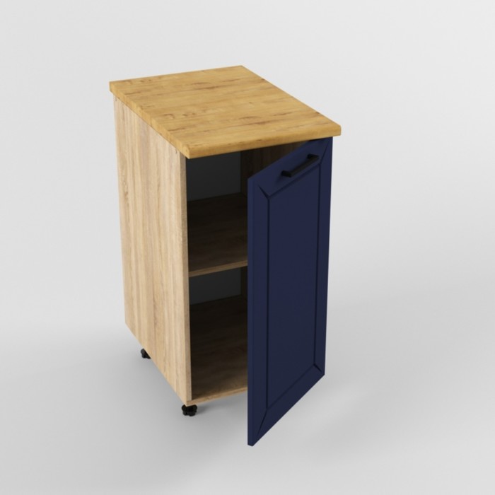 Полная высота шкафа от пола до верха столешницы 850 мм. При этом высота столешницы 20 мм, высота цоколя 100 мм.