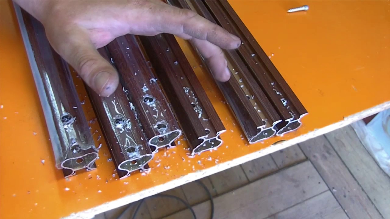 Переходим к этапу сверления. Сначала рассверливаем отверстия тонким (2 мм сверлом) — этого можно не делать, но так сверла большего диаметра лучше центрируются. После чего последовательно проходим отверстия сверлом в 5 мм — на всю глубину профиля и 9 мм на один слой алюминия (у меня 9 мм сверло куда-то запропастилось, поэтому я использовал 10мм).