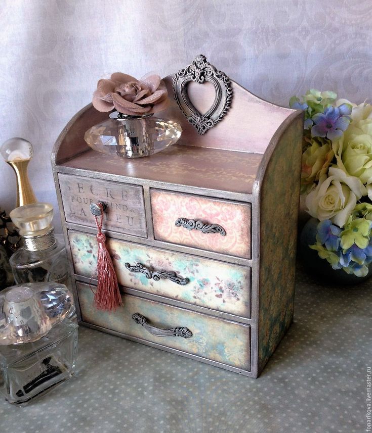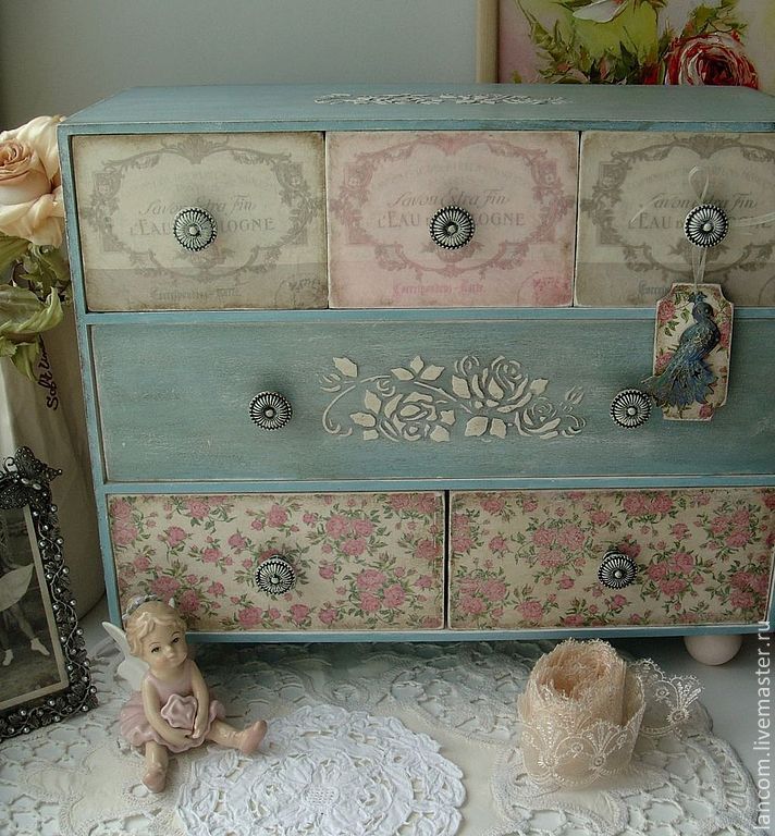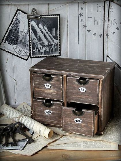 При покупке имейте в виду, что вы хотите искать комоды разных размеров и с множеством ящиков, как в настоящем винтажном аптекарском сундуке. Это помогает сохранить аутентичность внешнего вида.