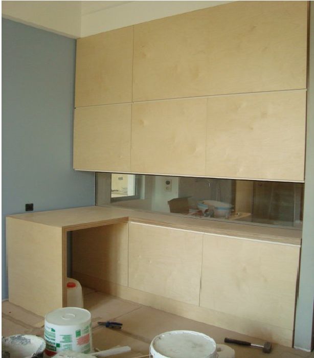 Если делаются фасады, то оптимальным считается материал с толщиной до 12 мм. Для дверок в навесных шкафчиках, фиксирующихся с применением ребер жесткости, достаточно, чтобы фанера обладала толщиной в 6 мм;