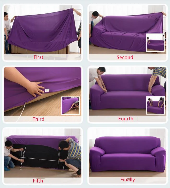 - Вывернуть чехол и примерить его на диван.