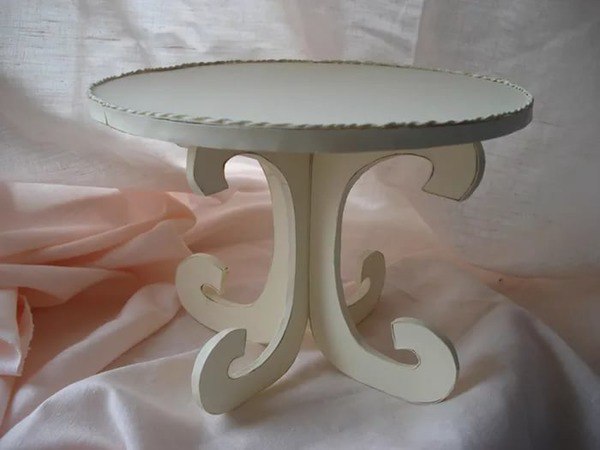 - Наклейте по краю красивую оборку скатерти и сверху положите вторую столешницу. Стол готов.