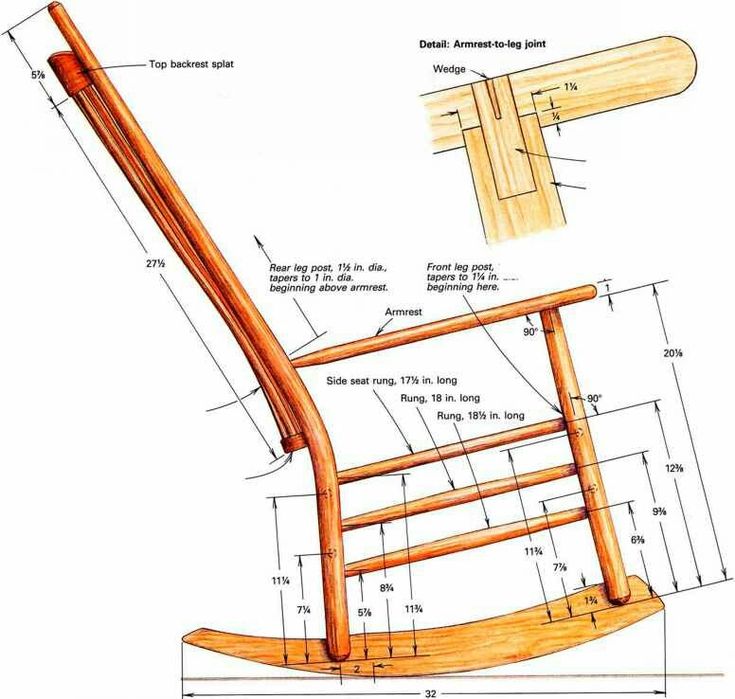 Перед тем как сделать кресло-качалку своими руками, необходим грамотный чертёж! Чаще всего мастера — самоучки находят готовые чертежи кресла-качалки на просторах интернета, но стоит учитывать массу самого крупного человека, который будет им пользоваться, чтобы в дальнейшем избежать недоразумений.