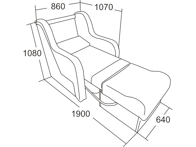 Кресло-кровать в разложенном виде: Д 1994 мм (78 1/2 дюйма) x Ш 730 мм (28 3/4 дюйма) x В 684 мм (26 15/16 дюйма)