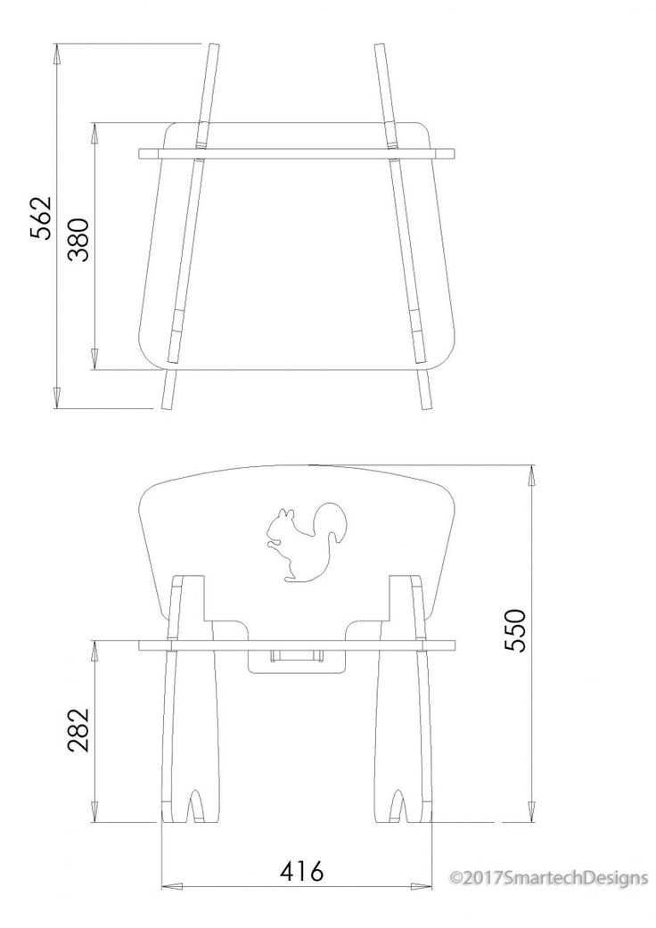 Проявив немного фантазии и подготовив собственные чертежи, вы можете изменить внешний вид и отделку стульчика, а также изготовить столик для ребенка похожего дизайна. Ваш ребенок это оценит.