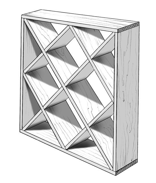 Детали несложные, и в результате получается винная полка с тонким геометрическим дизайном.