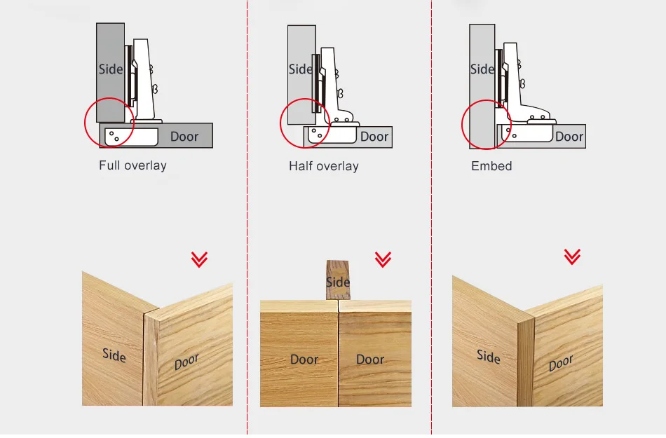 Четырехшарнирные мебельные петли в зависимости от сопряжения дверной створки с корпусом изделия делятся на: